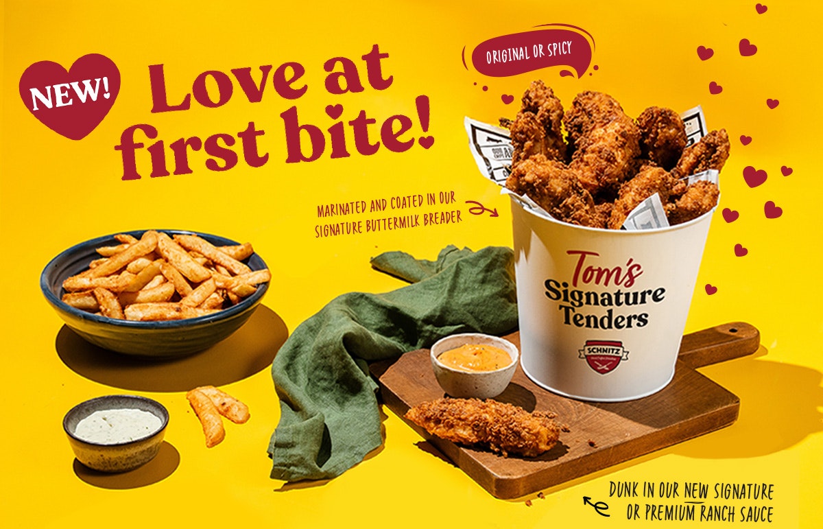 Real chicken tenderloins marinated and coated in our signature buttermilk breader for that world-class Schnitz crunch, available in Original or Spicy.